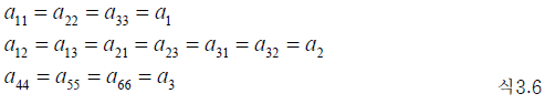 - 가 되고 a3 = 2(a1 − a2) 가 되어 독립적인 탄성 계수는 2개라는 것을 알 수 있습니다. 여기서