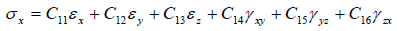 - 위 식에서 C11 ~ C16 은 재료정수입니다. 다른 성분에 대해서도 동일하게 표현하는 것이 가능하므로, 요약해서 정리하면 다음과 같습니다.