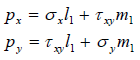 - 임의의 각도에서 τξη가 0이 되었다고 두면, BC상에 작용하는 힘의 x, y방향 성분은 다음과 같이 표현할 수 있습니다.