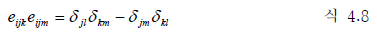 (2)만일 i=m, j=l, e_ijk = e_lmk = -e_klm 이라면, 곱 e_ijk e_lmk(n.s.)은 –1 이 된다. 따라서 식 4.3 이 증명되었습니다.