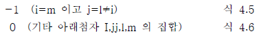 - 그러나 4 개의 첨자 모두는 같지 않습니다. (왜냐하면 만일 i=j 혹은 l=m 이라면 각각의 e 인자가 0 이 되기 때문이다.) 이 경우 식 4.3 의 좌변에 대하여 조건 4.4, 4.5 또는 4.6 이 만족됩니다. 또한 식 4.4 와 4.5 에서의 값은 식 4.3 의 좌변에서도 역시 만족됩니다. 왜냐하면