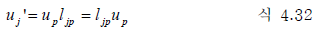 - [여기서 식 4.15의 무효첨자 j에 대하여 새로운 첨자 k를 도입해야 합니다. 왜냐하면 j는 이미 식 4.16 에서 자유첨자로 사용되고 있기 때문입니다.]